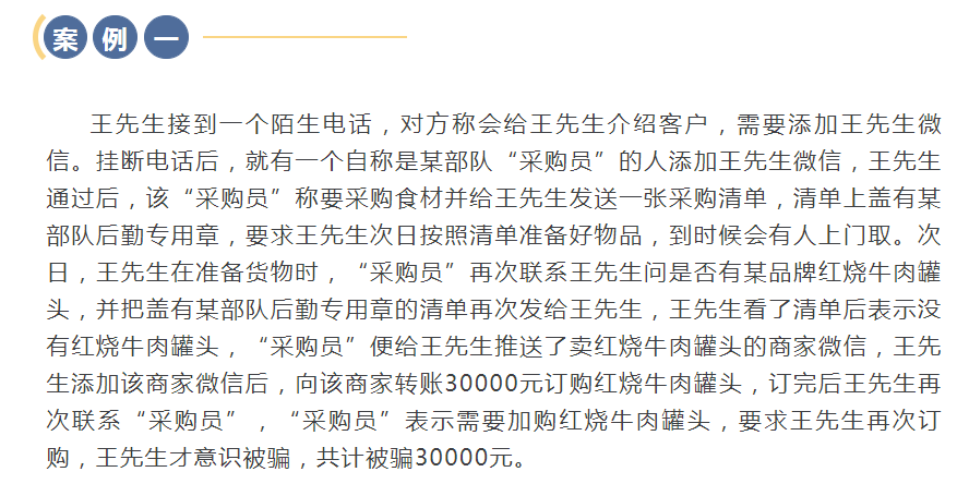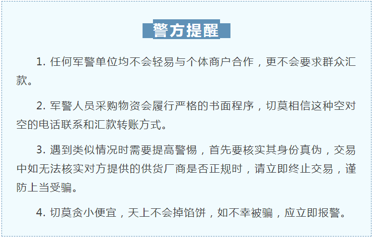 警惕!有人冒充“軍警”以訂購物資為名進行詐騙!