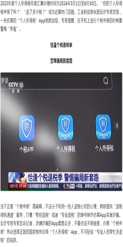 “專業(yè)人員幫忙多退稅”?別信!專家拆解仿冒個(gè)稅App詐騙套路