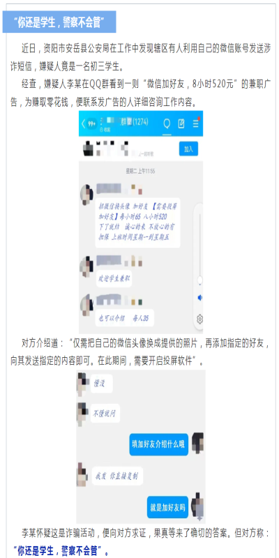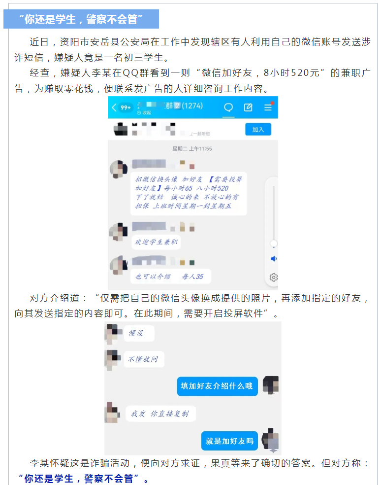 不少低齡學(xué)生群體聽(tīng)信不法分子